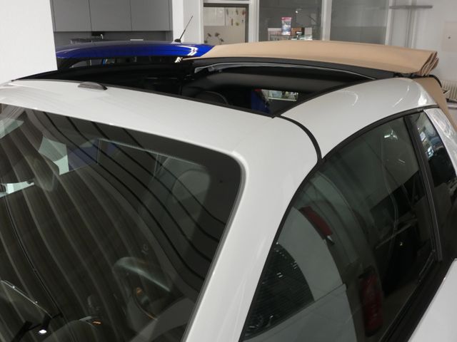 Ablage-Paket, Bodypanel Kristall-Weiß / Crystal White (Farbcode EAZO), Cool & Media-Paket, Fußmatten Velours, Komfort-Paket, Kühlermaske weiß, LED & Sensor-Paket, Mittelarmlehne vorn klappbar, Rückfahrkamera, Sitzheizung, Sound-System JBL, Tridion-Sicherheitszelle Weiß (Farbcode), Verdeck Beige (Light)